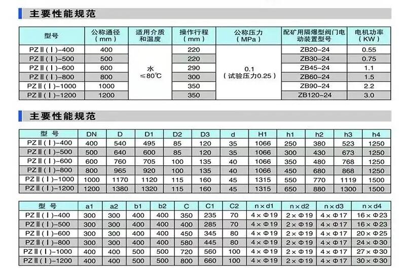 手動配水閘閥是在原PZ1型的基礎(chǔ)上進行了改良設(shè)計;PZII型是在改良設(shè)計的基礎(chǔ)上增加礦用閥門電動裝置,來滿足煤礦水泵房無人值班,全自動化生產(chǎn)的需求。具有結(jié)構(gòu)簡單、密封性能好、清污方便、操作靈活、省力等特點,主要應(yīng)用于井下泵房吸水井的配水之用。配水閘閥也可稱為配水閘門,是的啟閉件是閘板,閘板的運動方向與流體方向相垂直,閘閥只能作全開和全關(guān) , 不能作調(diào)節(jié)和節(jié)流。閘板有兩個密封面 , 常用的模式閘板閥的兩個密封面形成楔形、楔形角隨閥門參數(shù)而異 , 通常為 50, 介質(zhì)溫度不高時為 。楔式閘閥的閘板可以做成一個整 體,叫做剛性閘板;也可以做成能產(chǎn)生微量變形的閘板 , 以改善其工藝性 , 彌補密封面角度在加工過程中產(chǎn)生的偏差 , 這種閘板叫做彈性閘板。